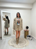 Scopri il fascino autentico del nostro tailleur "Wild Essence", l'emblema della donna moderna che abbraccia le sue radici. Con un'audace giacca oversize a quadri e una mini-gonna raffinata, questo completo è un inno all'eleganza che non teme di mostrare la sua forza.