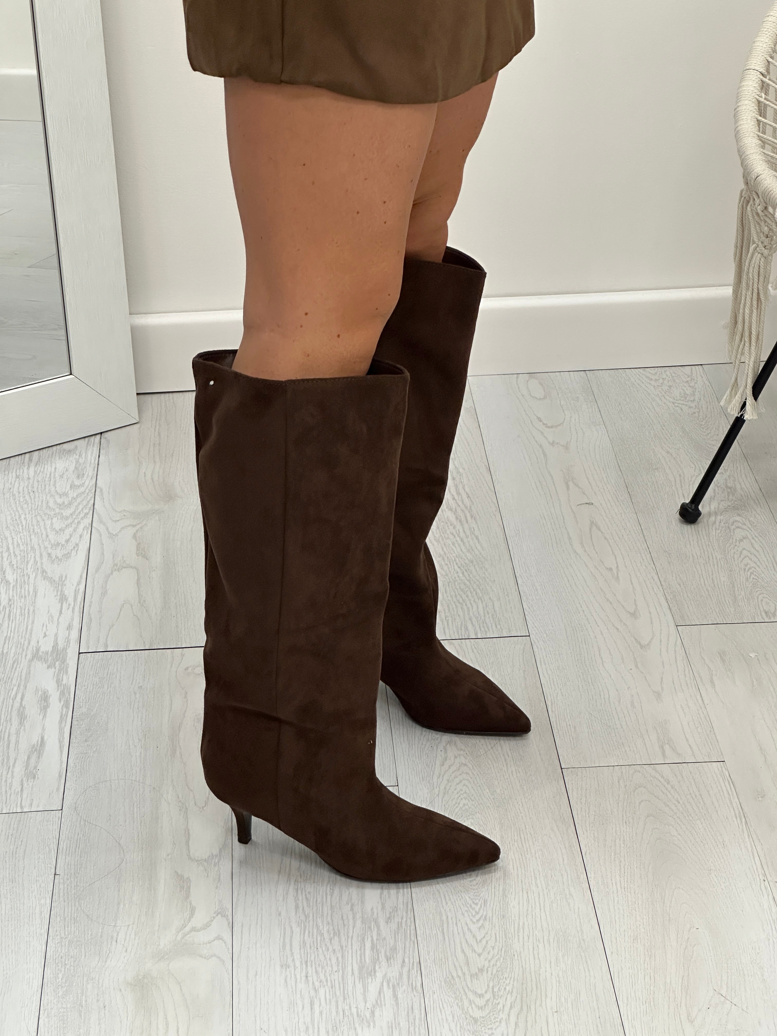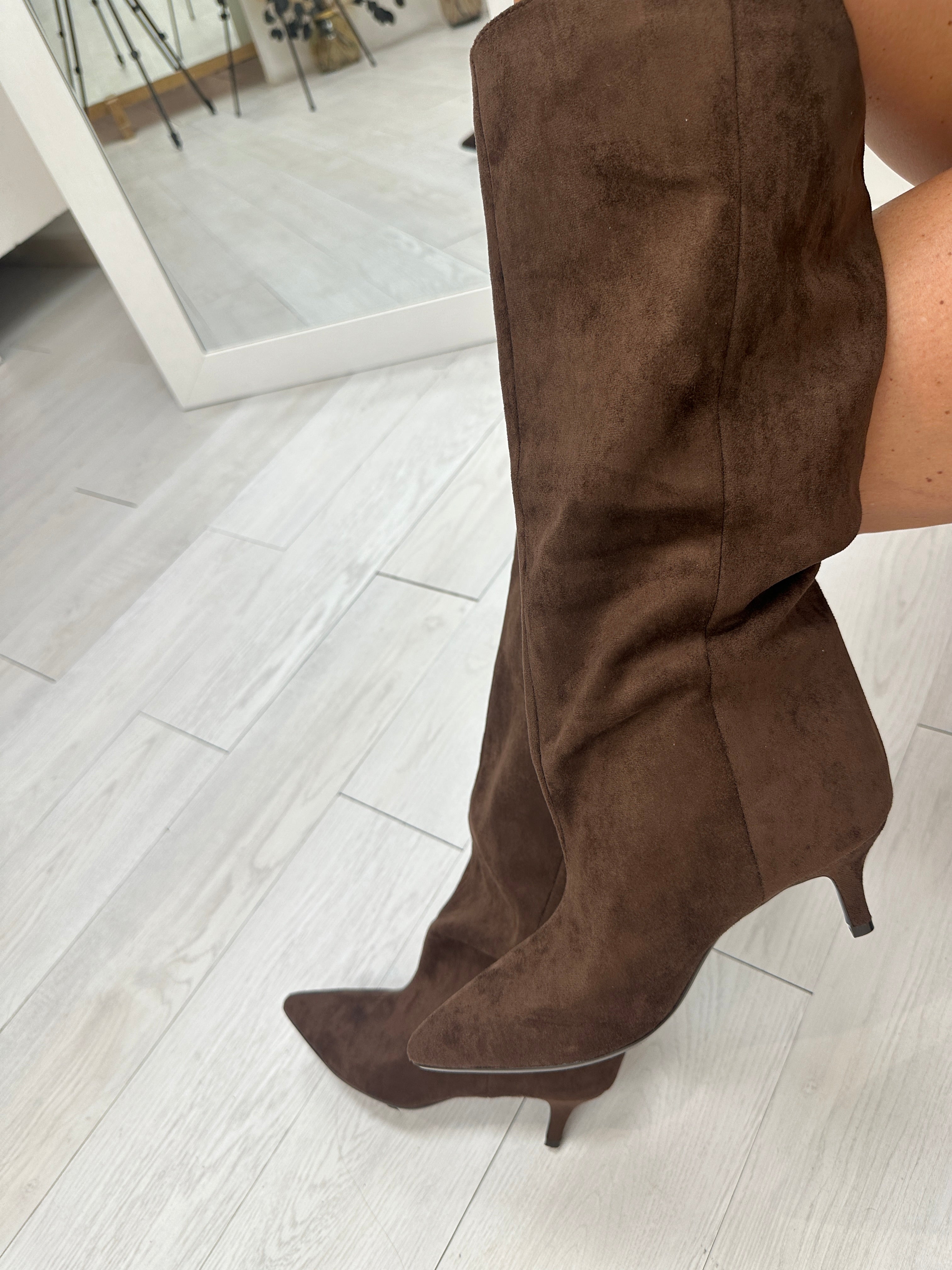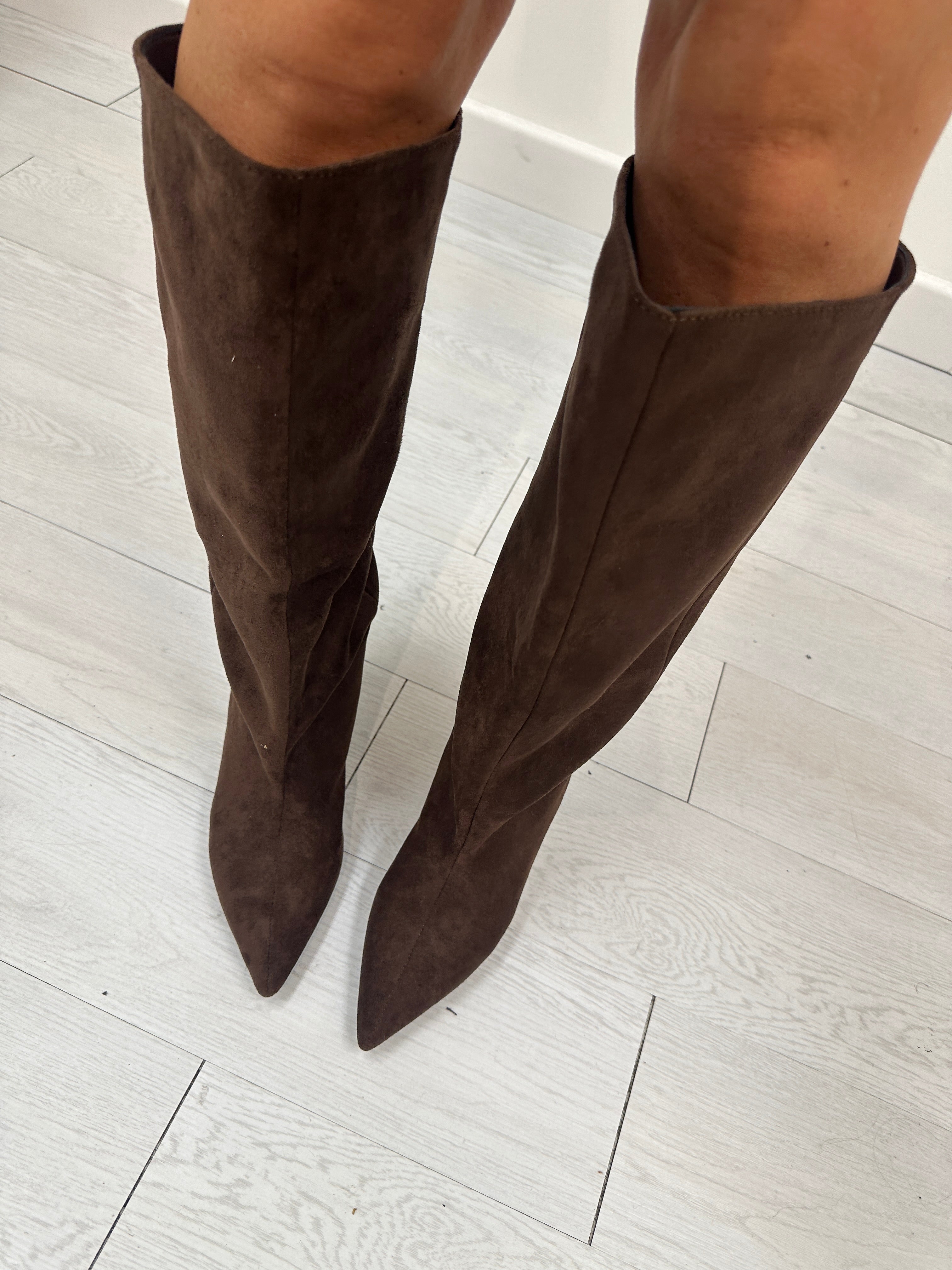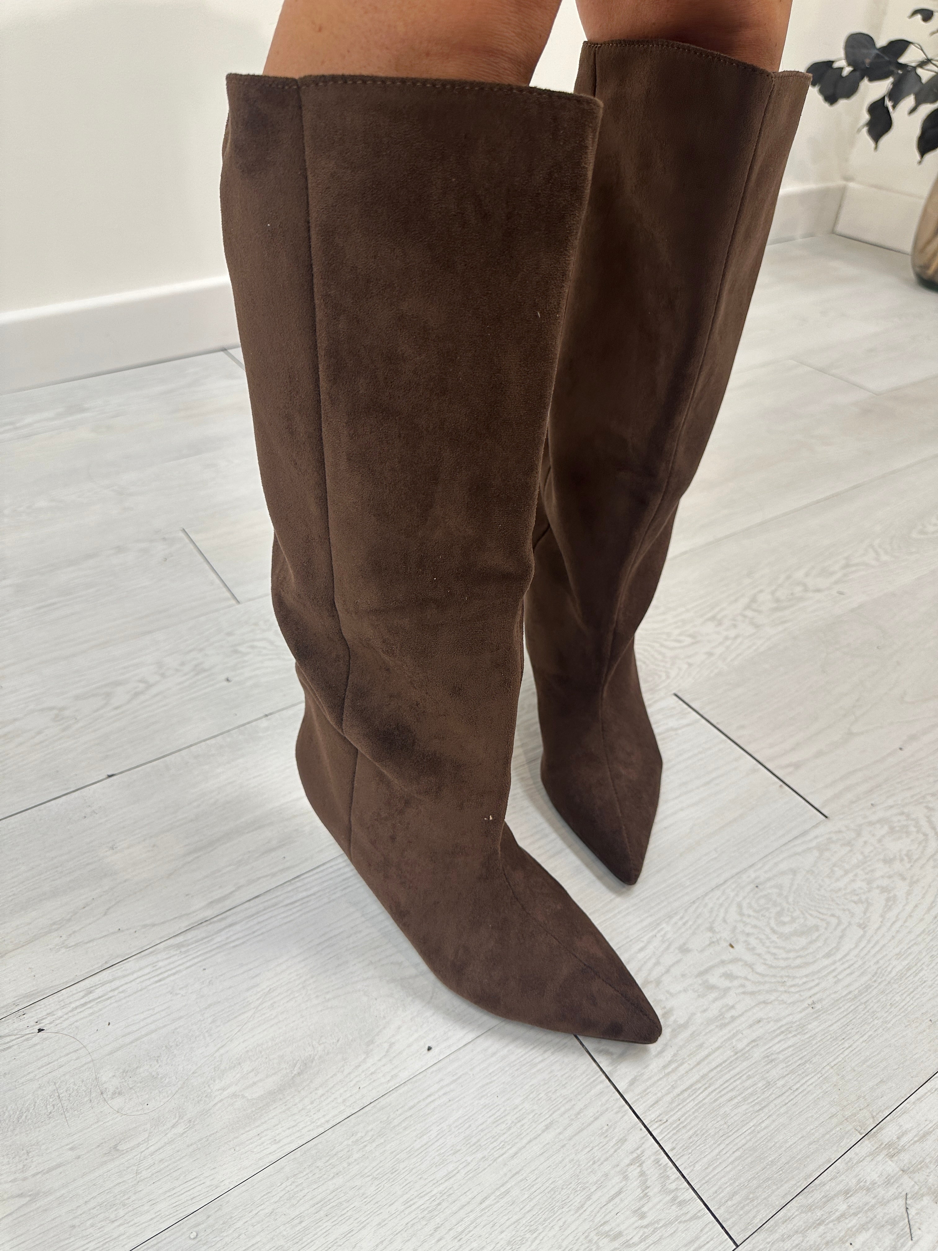 Stivale suede gamba larga