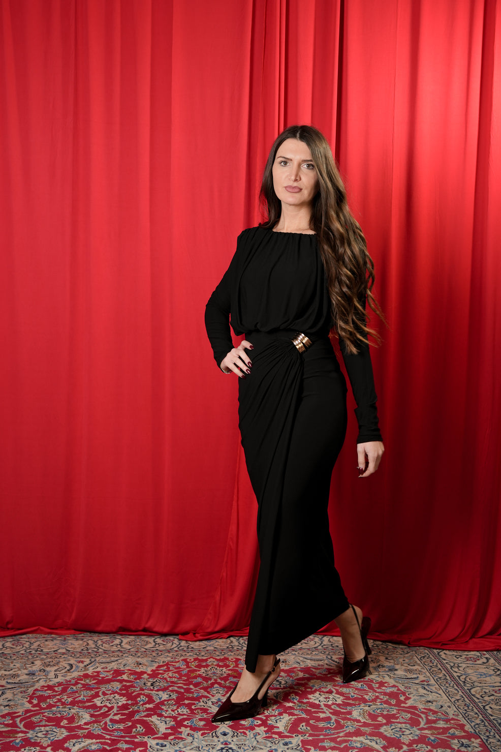 vestito lungo dettaglio oro