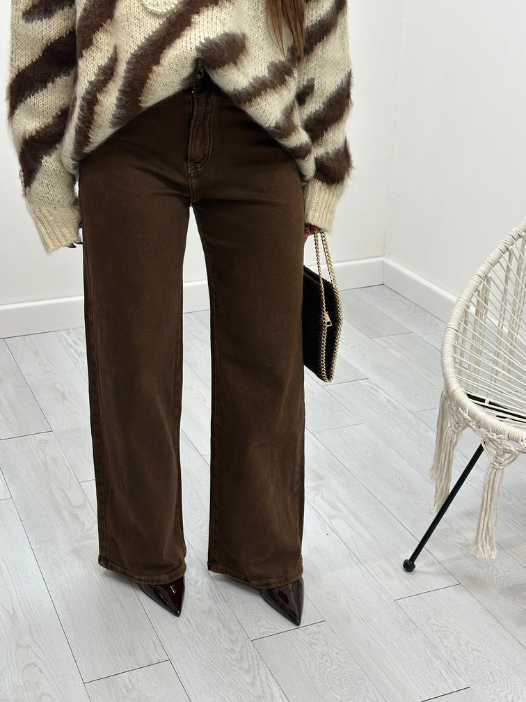Jeans wide leg marrone