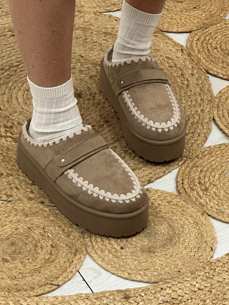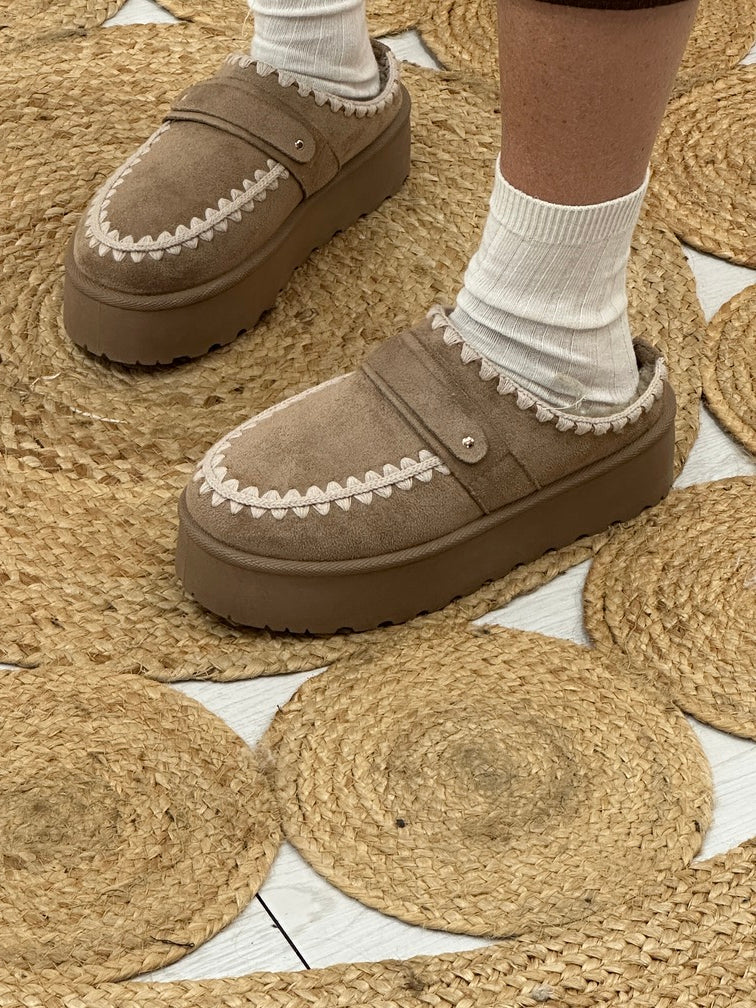 Ciabatta in ecopelliccia con para alta, calza regolare.